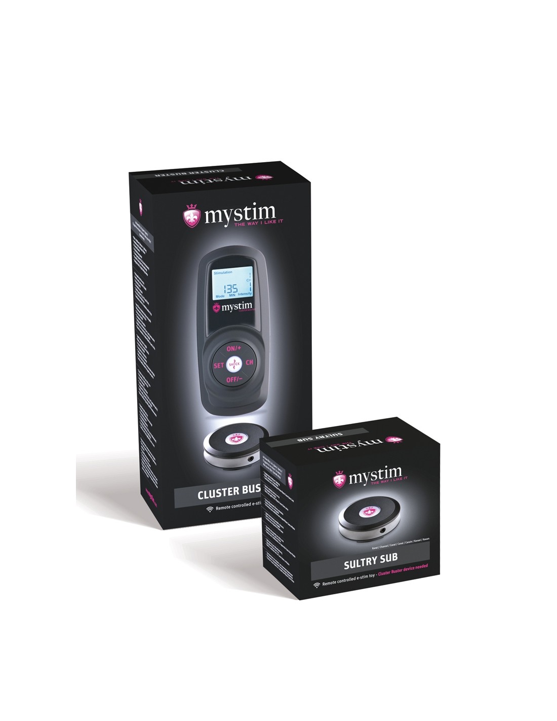 Le Mystim Cluster Buster est livré dans un set contenant la télécommande et un récepteur Sultry Sub. Ce récepteur sans fil est compatible avec tous les accessoires Mystim afin qu'ils puissent tous être contrôlés à distance à partir de lui.