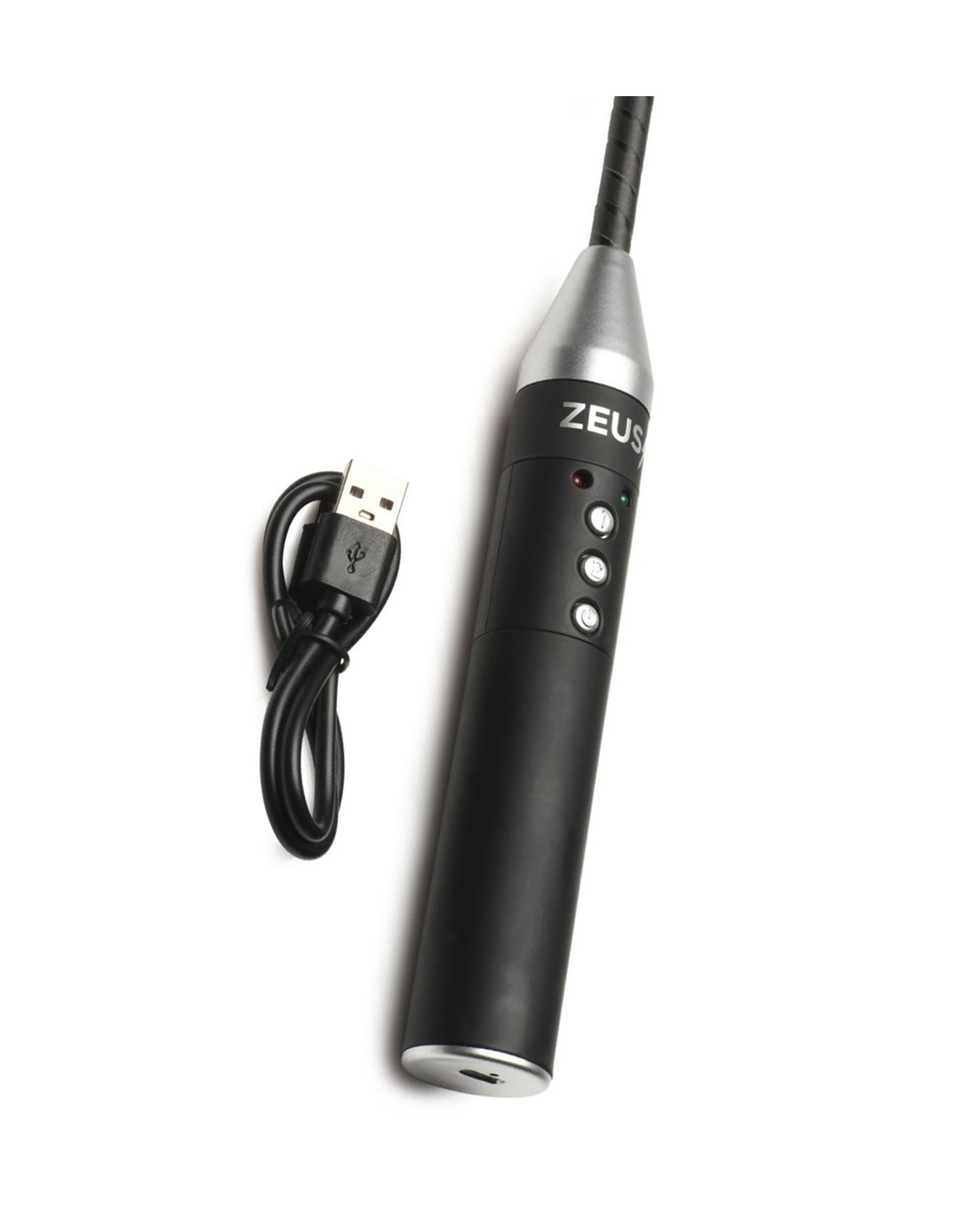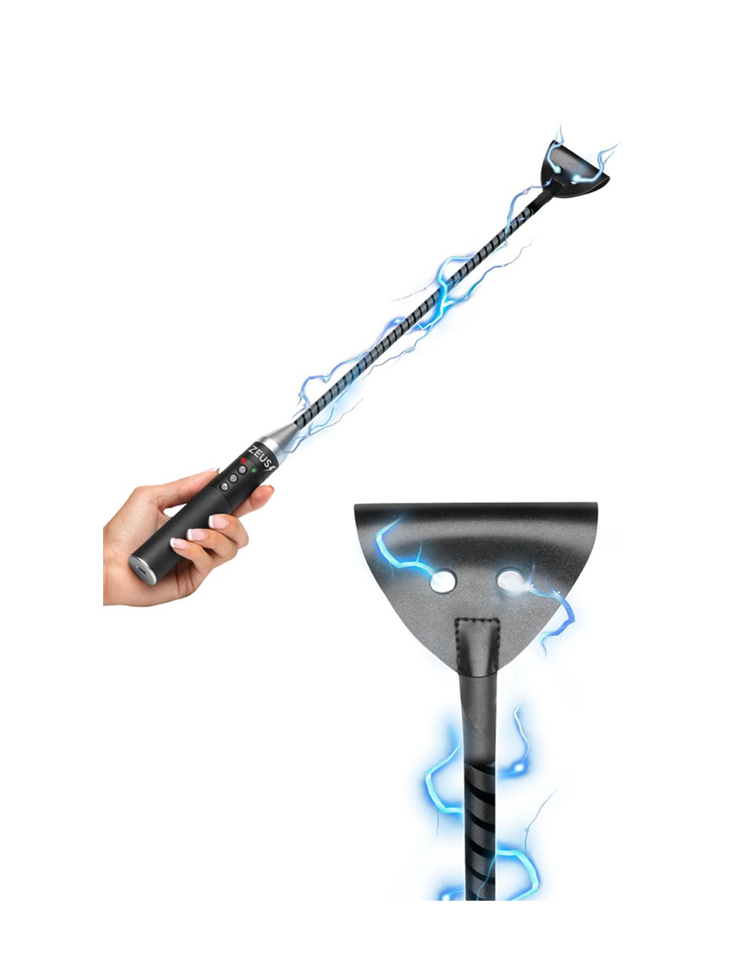 Cravache électro-stimulante, rechargeable, avec 2 modes de stimulation électrique et 100% Vegan, par Zeus Electrosex.