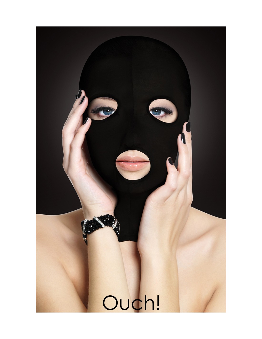 Cagoule BDSM avec 3 orifices (bouche et yeux) pour vous permettre de laisser libre cours à vos fantasmes tout en gardant l'anonymat, par Ouch!