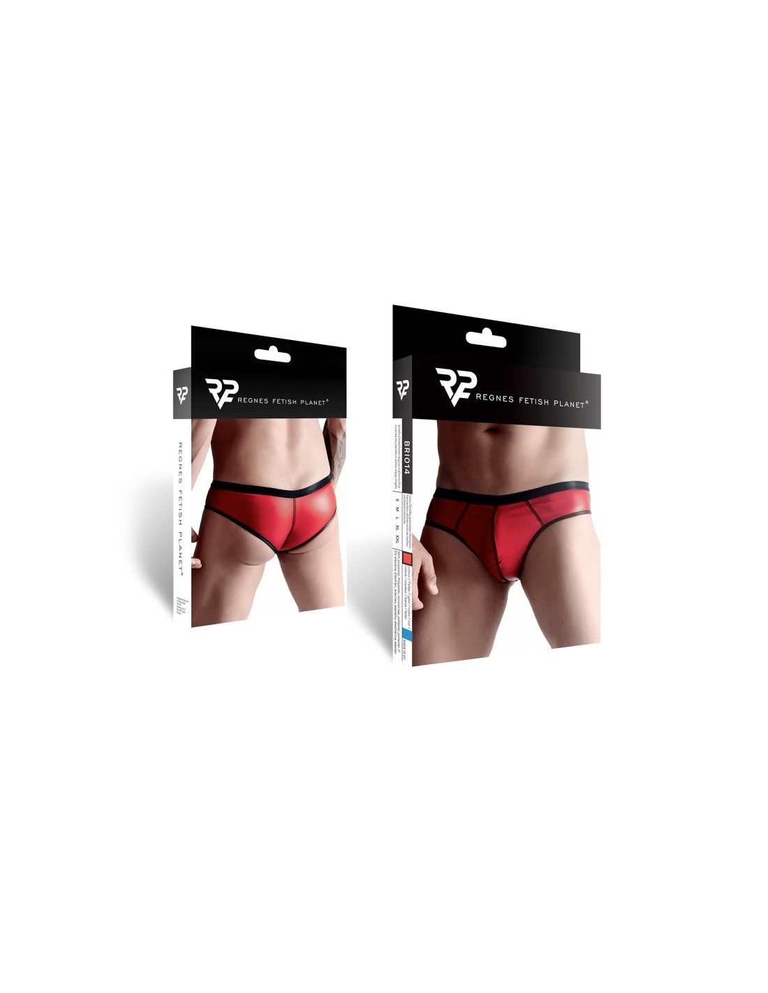 Slip sexy en tissu wetlook brillant rouge aux coutures renforcées fabriqué par la marque Européenne Regnes Fetish.