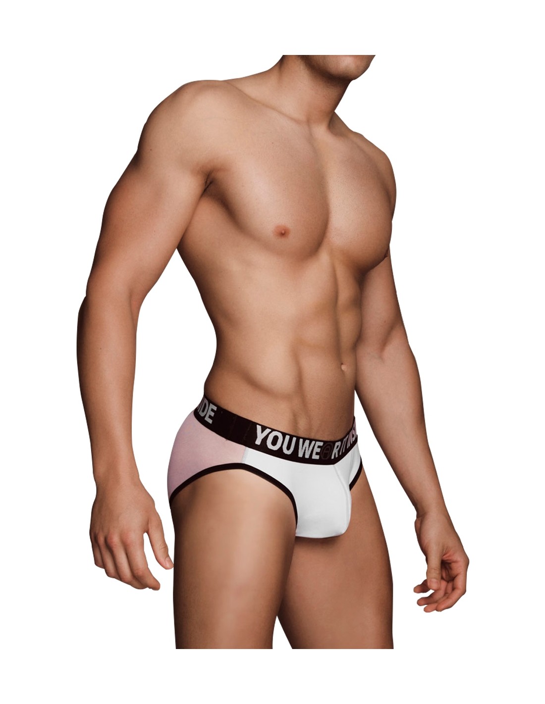 Le devant du slip est tout blanc. La coque est spécialement formée pour mettre votre sexe en valeur. Le tissu en microfibre le rends très doux au toucher.