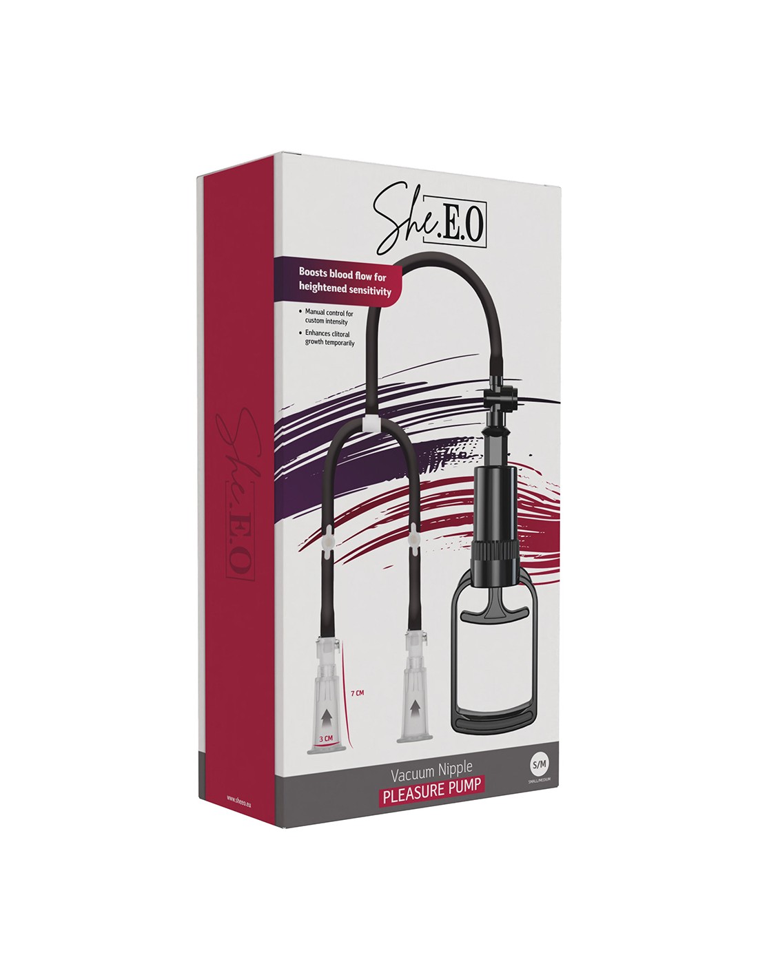 Décuplez la sensibilité de vos tétons avec la pompe à tétons manuelle de chez She.E.O. Disponible en 2 tailles.